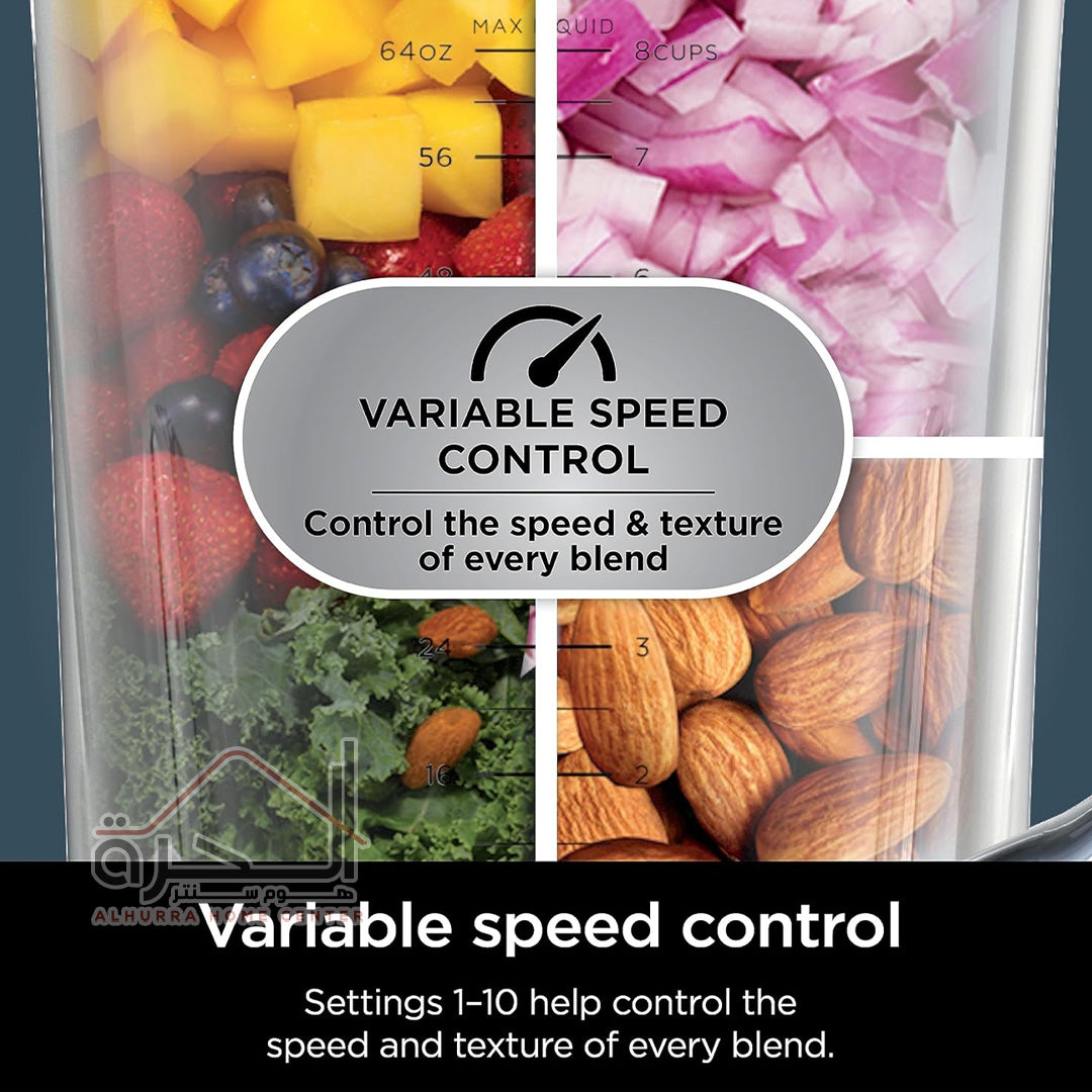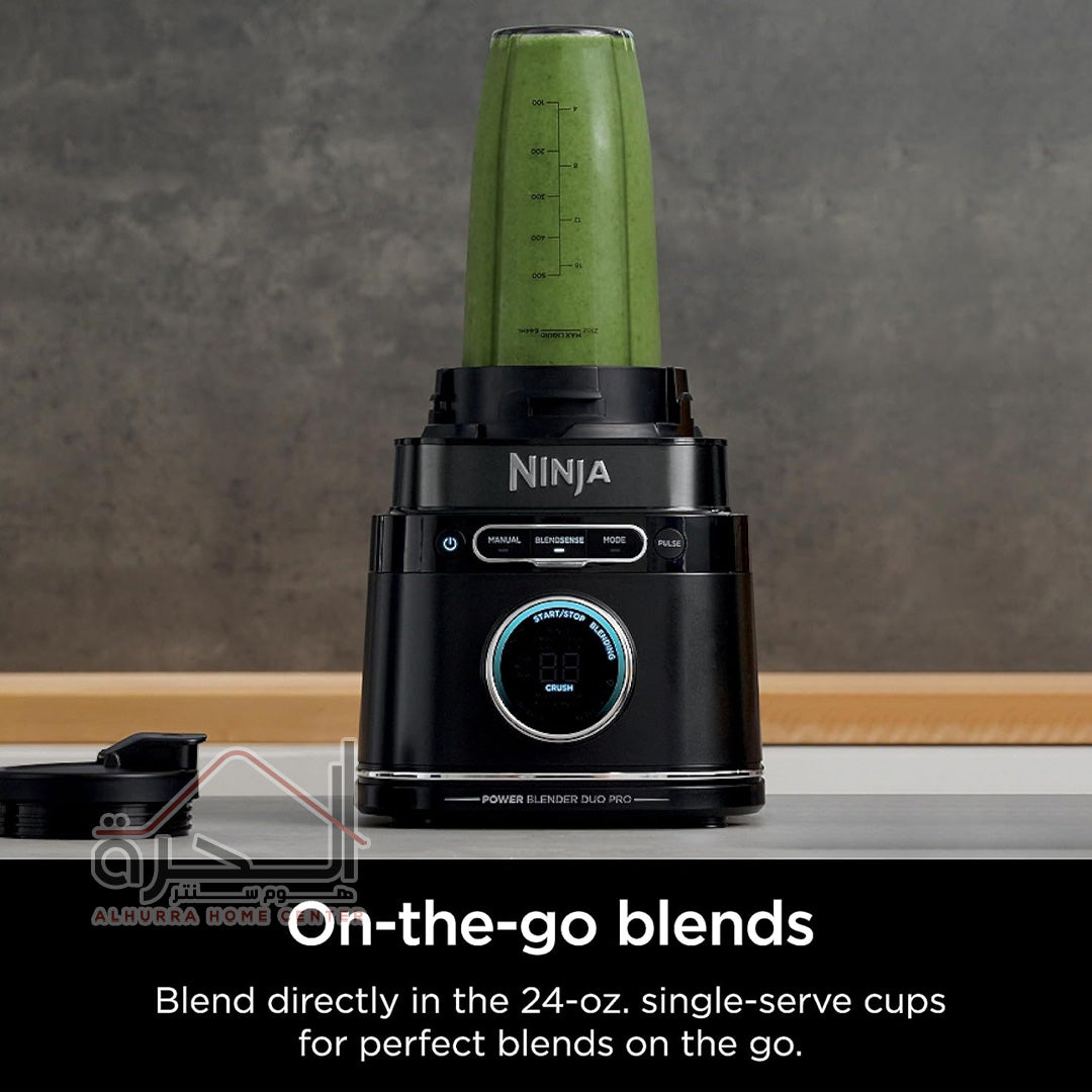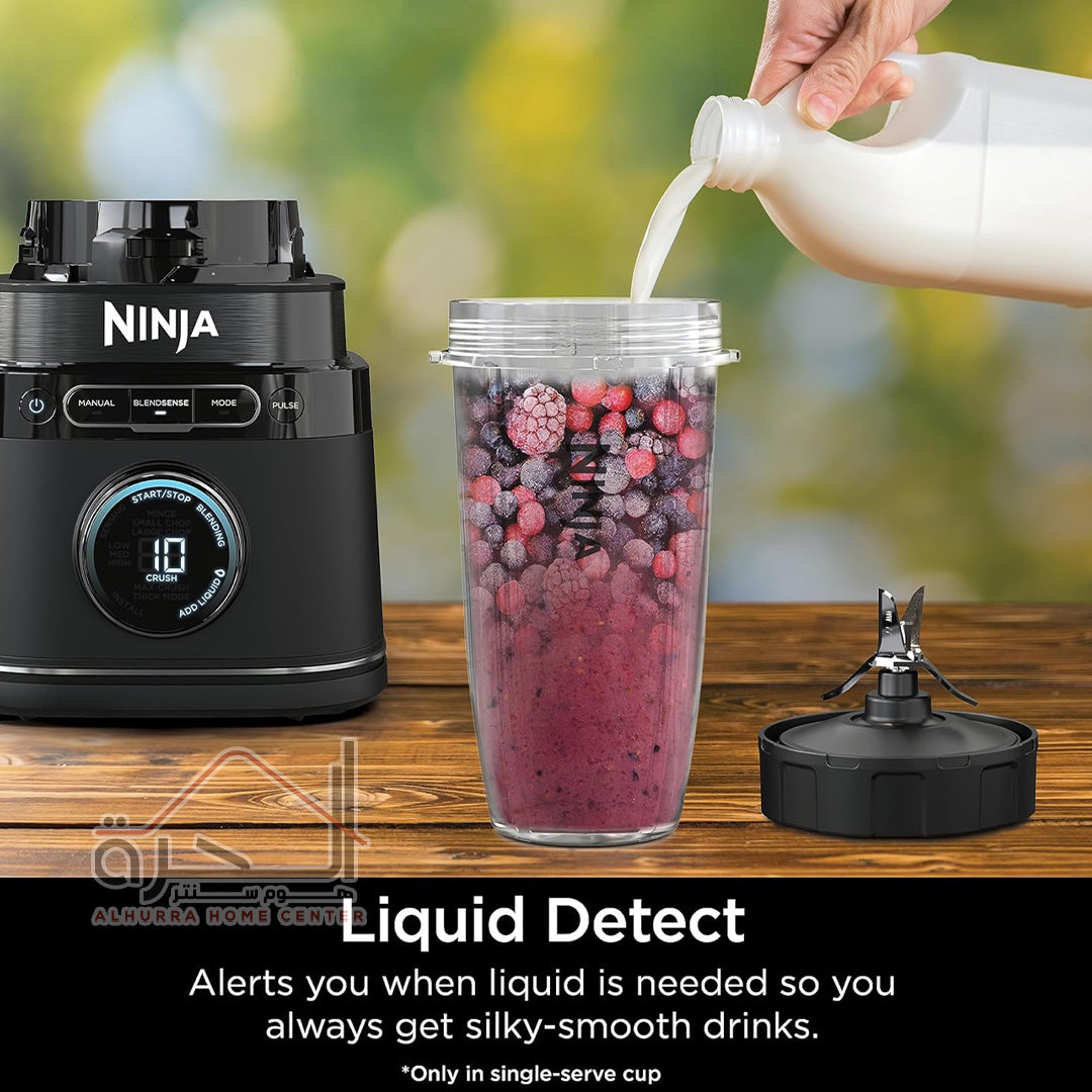 قاعدة محرك بقوة 1200 واط، إبريق سعة 2.1 لتر ، 2 كوب للاستخدام الفردي سعة 700 مل، شفرة Ninja Detect Total Crushing & Chopping، شفرات Hybrid Edge،