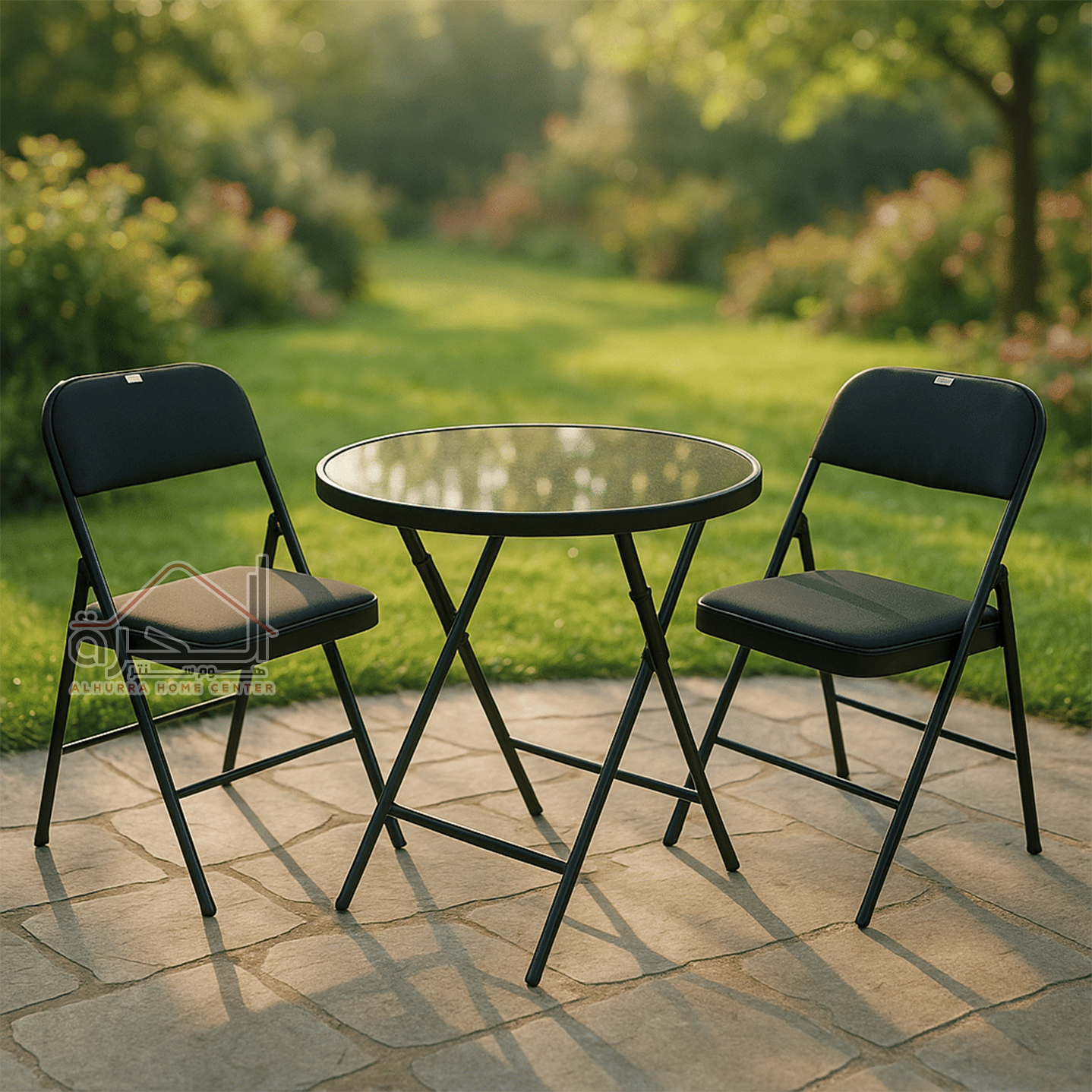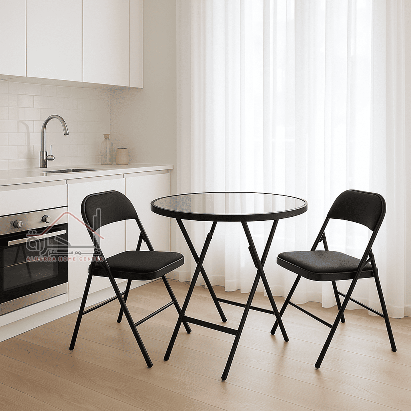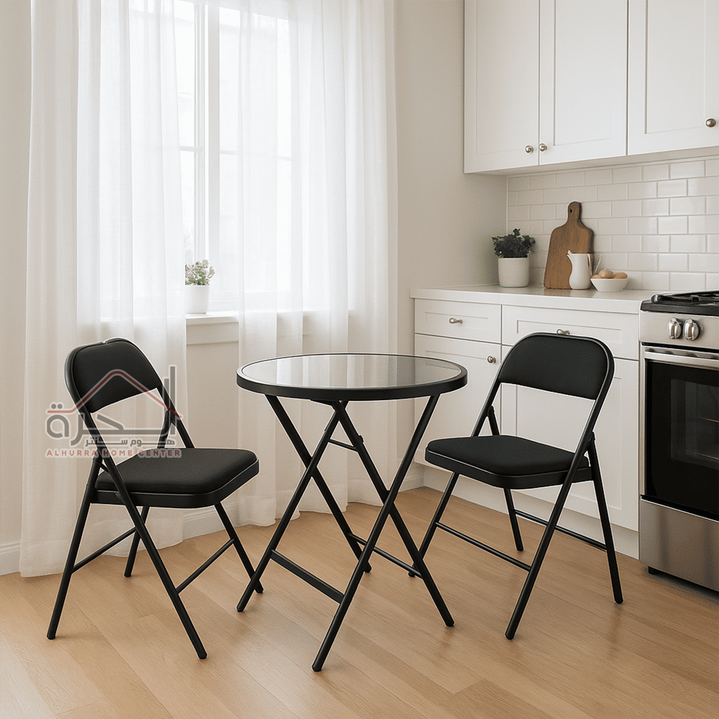 طاولة اسود مع وجه زجاج 90 سم مع كرسيين