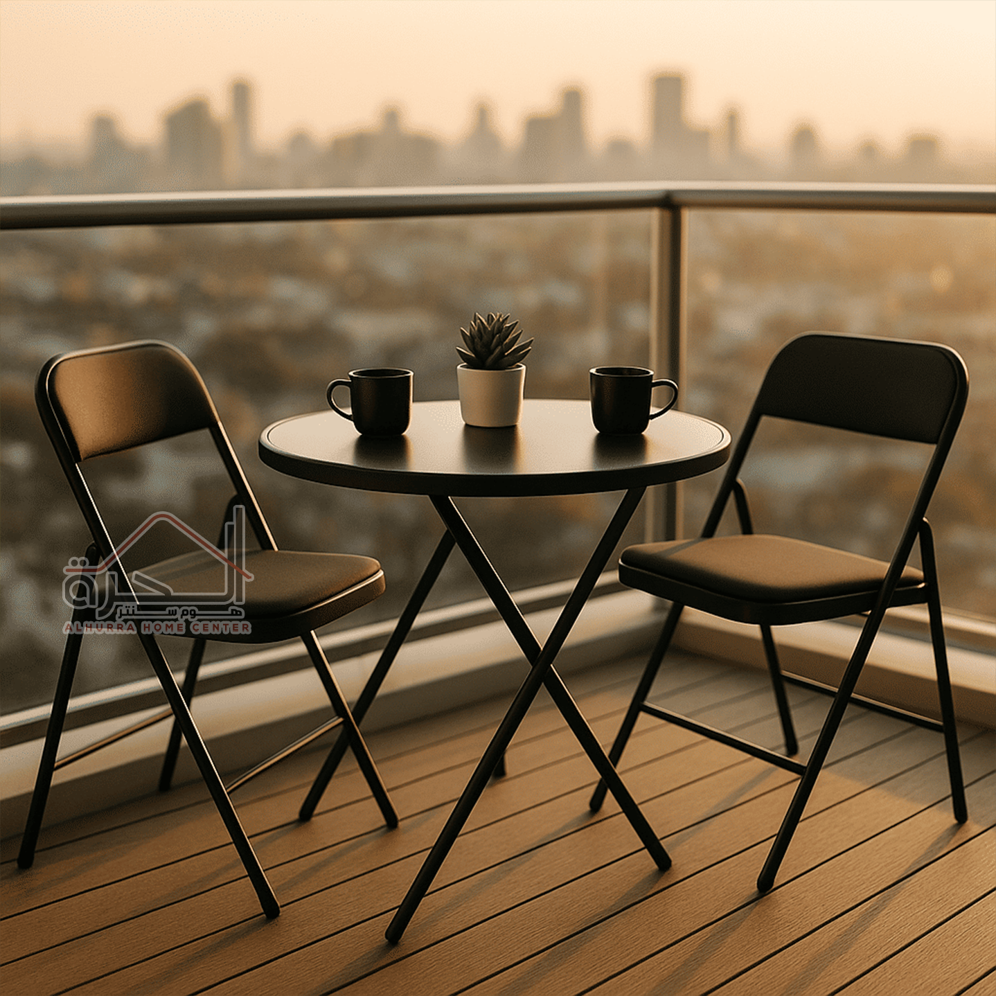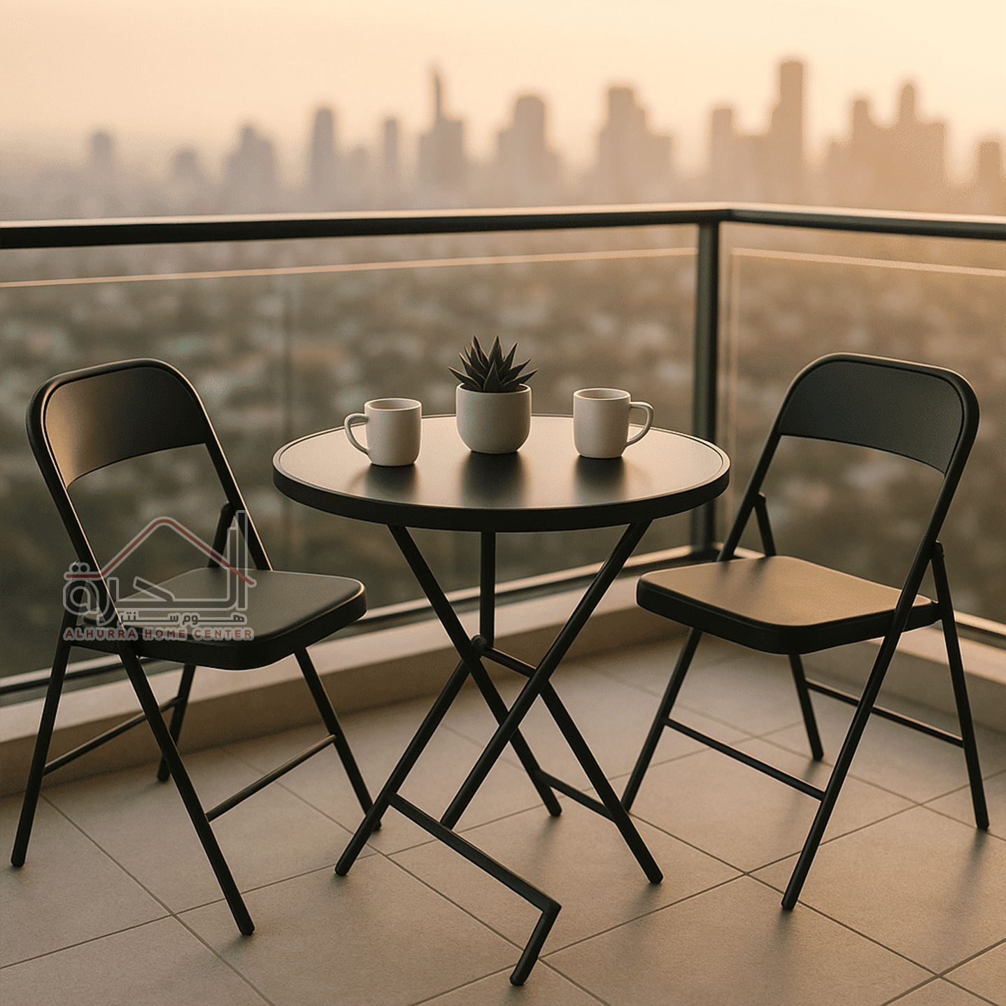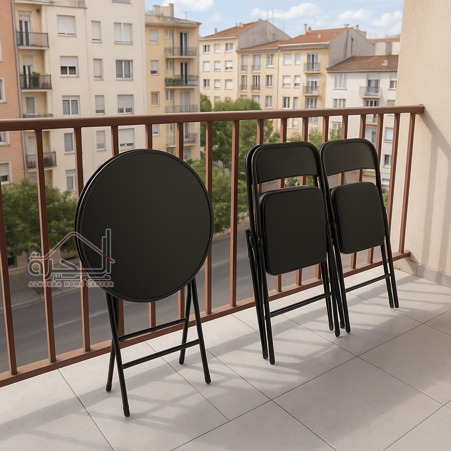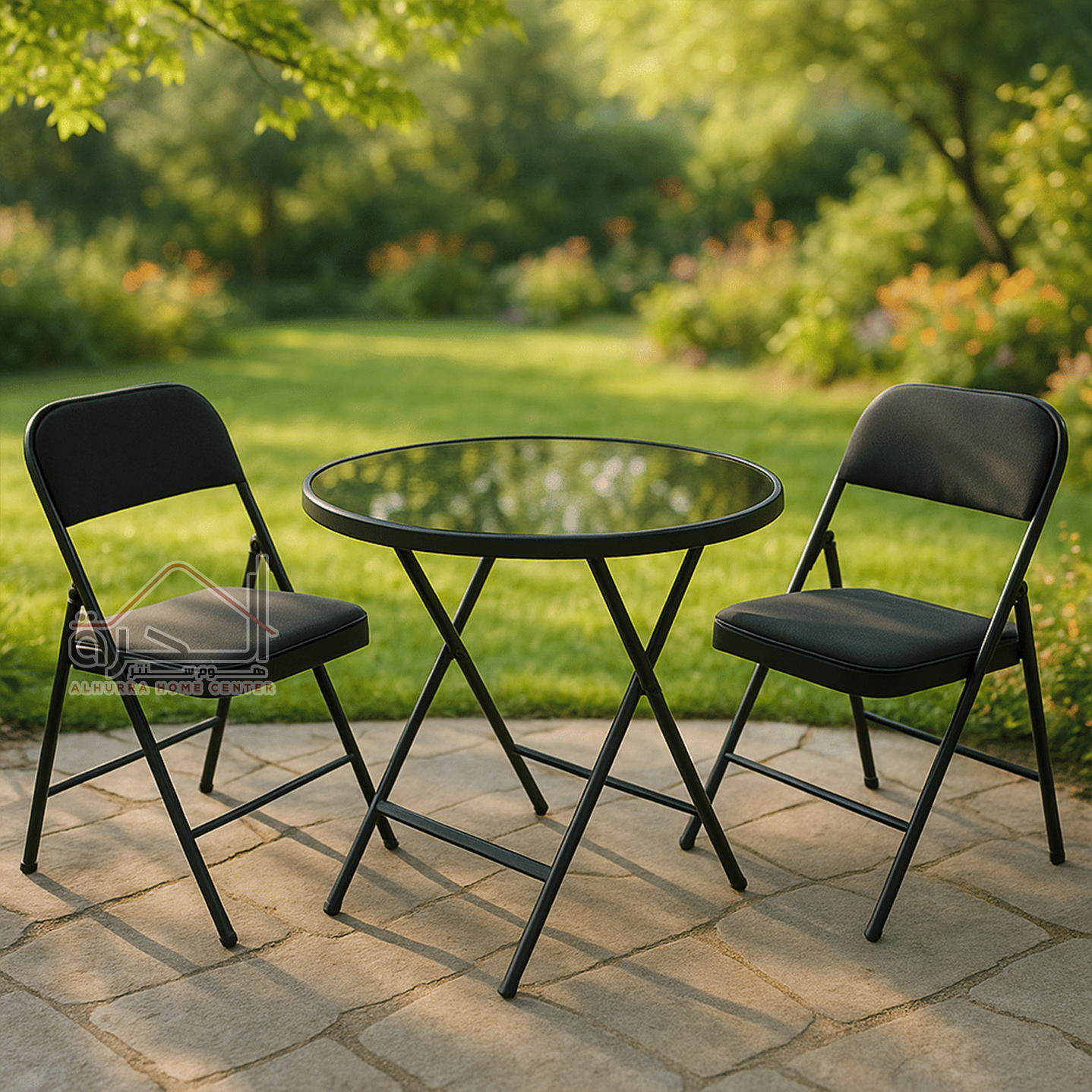 طاولة اسود مع وجه زجاج 90 سم مع كرسيين