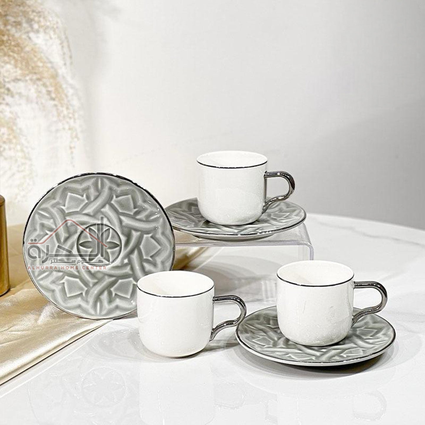 طقم فناجين قهوة عدد 6 بورسلان مزخرف سكني