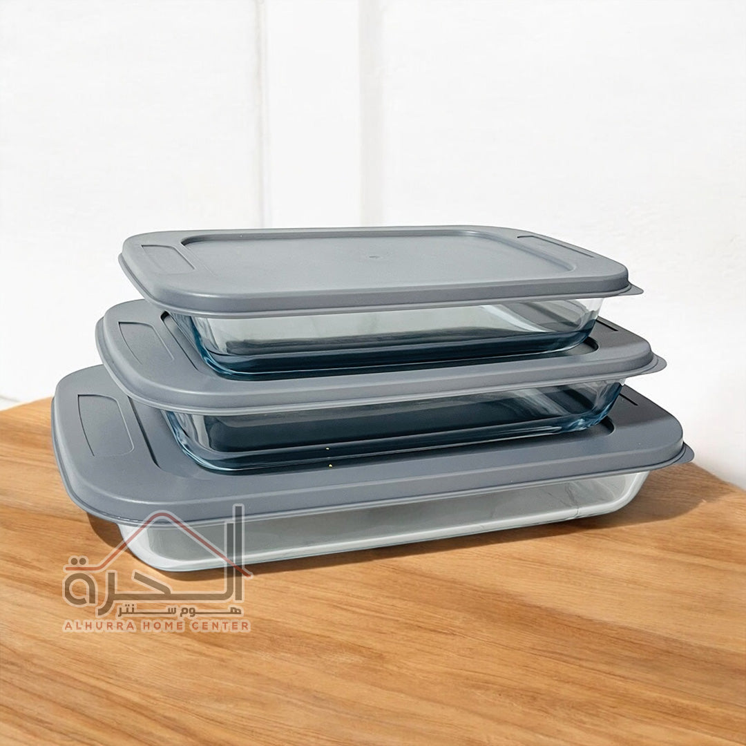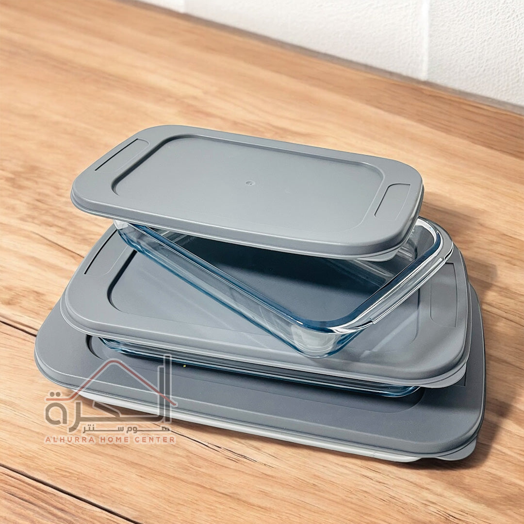 طقم 3 جاطات للفرن مع غطاء بلاستك
