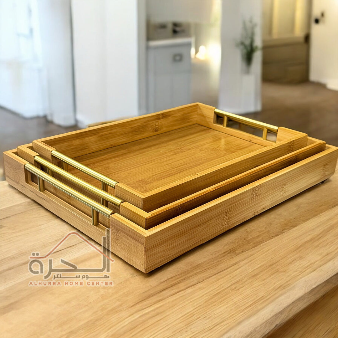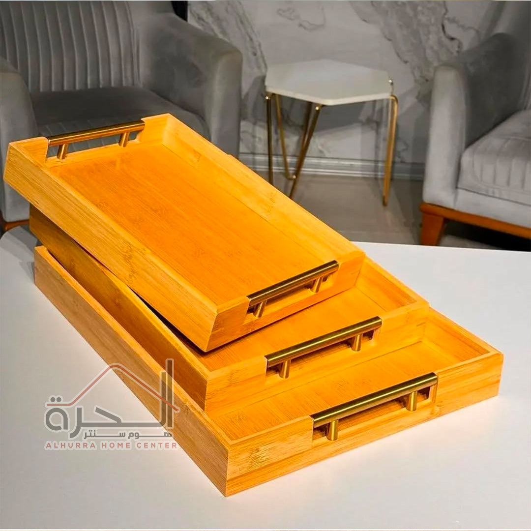 طقم 3 صواني خشب بامبو يد ذهبي 1236