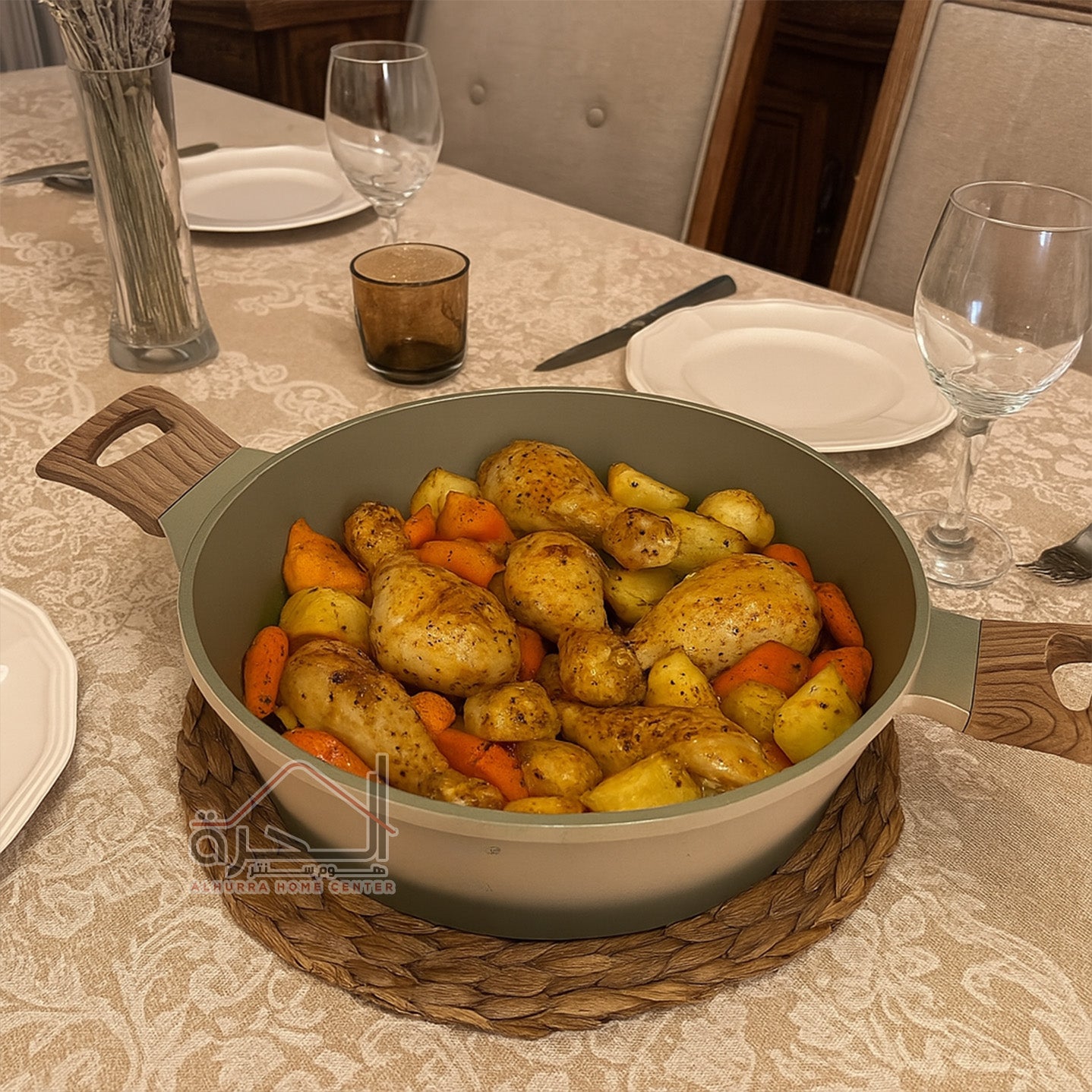 لا يلزق نهائيا و لا يحرق بسهولة و سهل جداً بالتنظيف