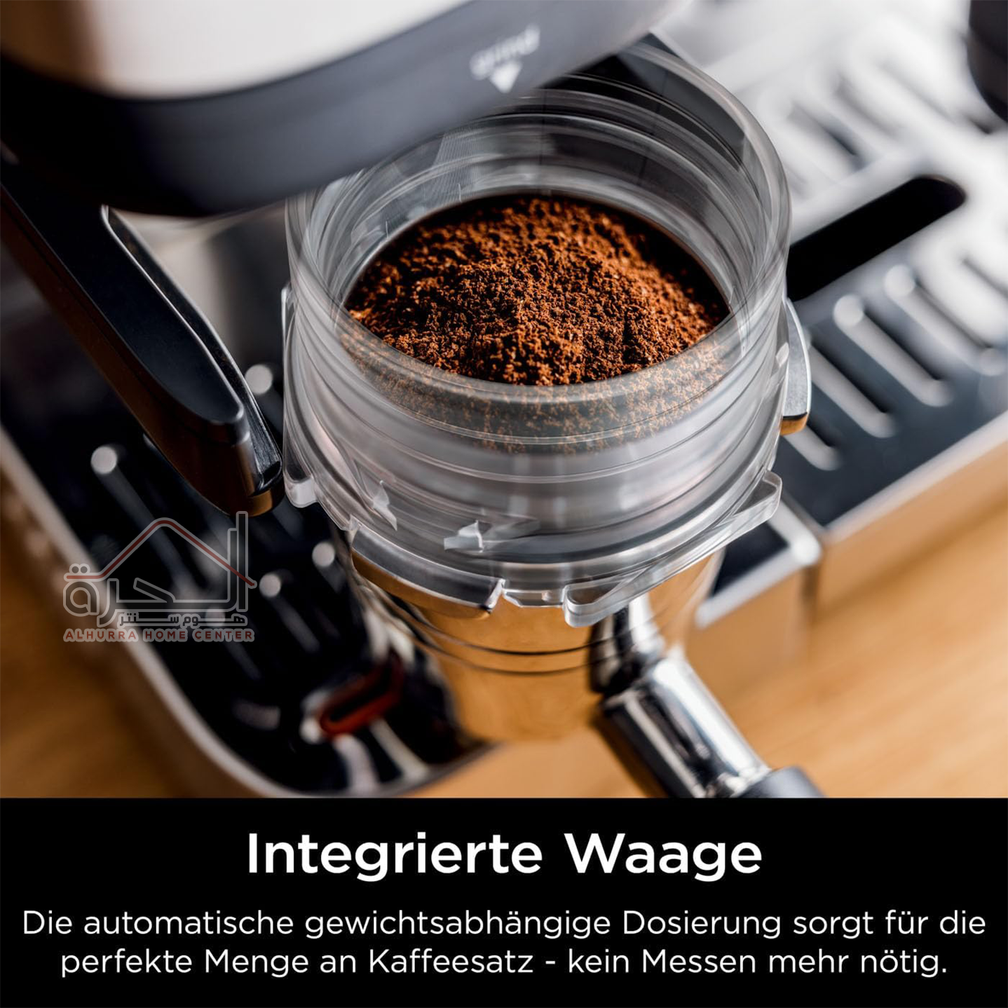 مطحنة مدمجة وميزان ذكي: تتيح لك تحضير قهوتك من حبوب البن الكاملة، مع تحكم دقيق في الطحن ووزن القهوة.