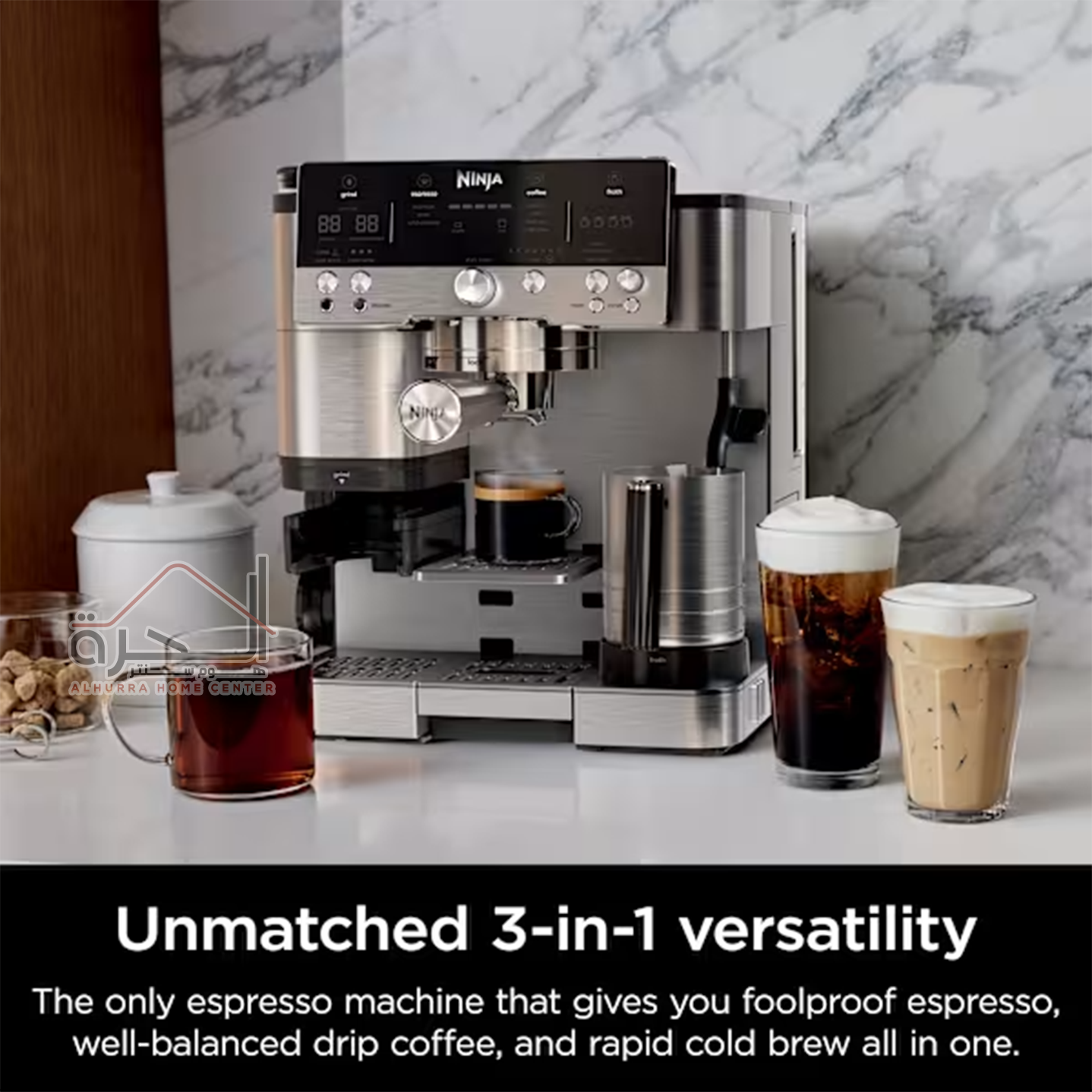 - متعددة الاستخدامات (3 في 1):يمكن استخدامها لتحضير الإسبريسو، والقهوة المثلجة، واللاتيه، والكابتشينو، وغيرها من المشروبات بفضل تقنياتها المتكاملة [1، 3].