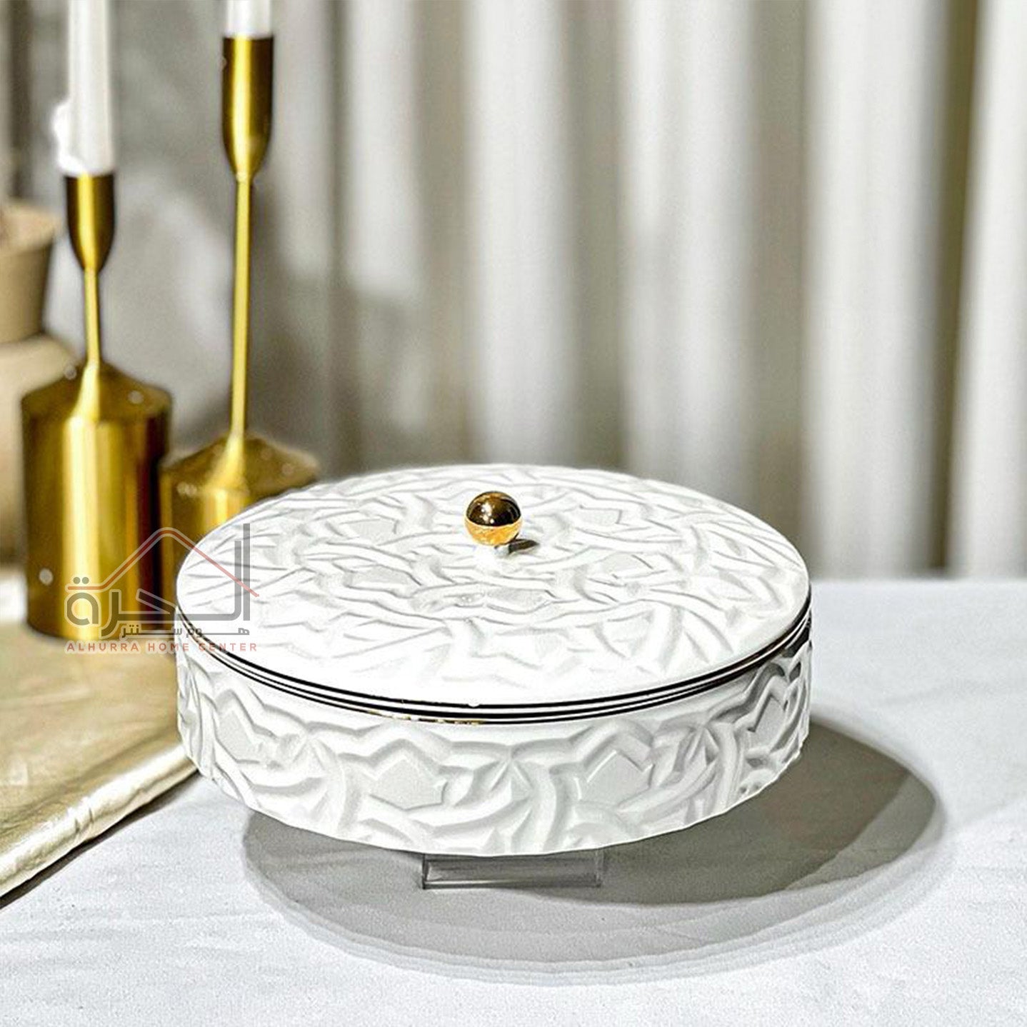 مضيفة بورسلان 23 سم مزخرف ابيض
